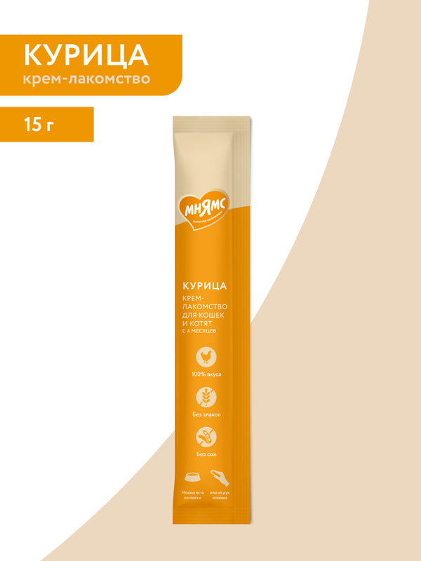 Повседневные Мнямс Крем-лакомство Мнямс для кошек с курицей 15 г