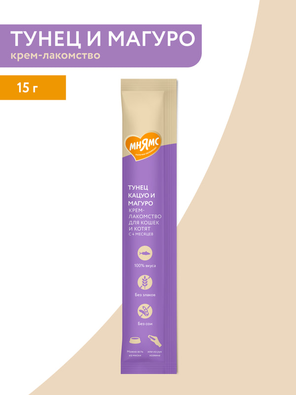 Повседневные Мнямс Крем-лакомство Мнямс для кошек с тунцом Кацуо и Магуро 15 г