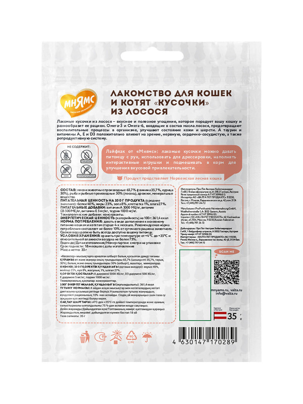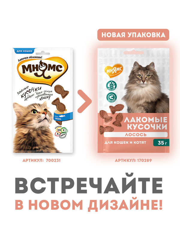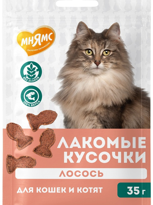 Повседневные Мнямс Лакомство Мнямс для кошек и котят "кусочки" из лосося 35 г