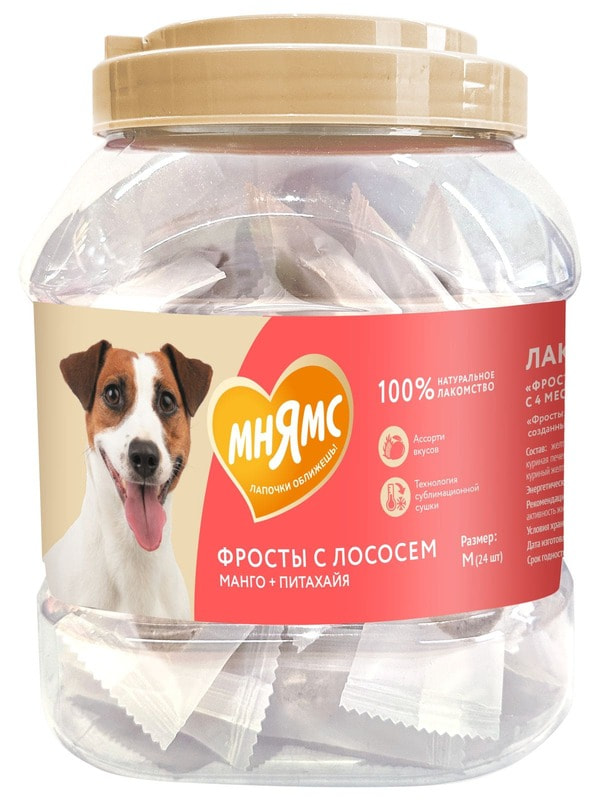 Повседневные Мнямс Лакомство Мнямс для собак и щенков с 4 месяцев "Фросты" с лососем. Размер М (24шт).