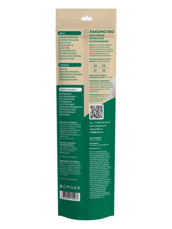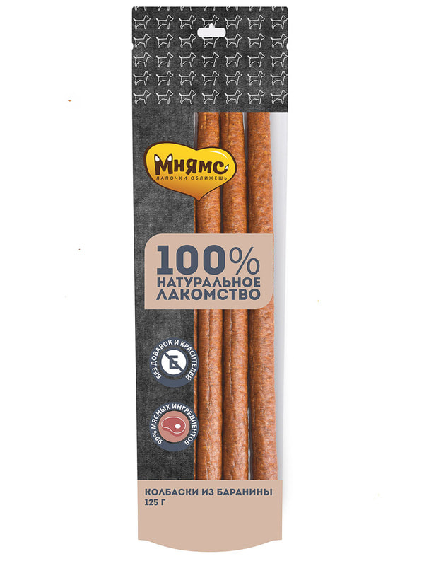 Колбаски из баранины – это вкусное угощение и отличный способ поощрить питомца при выполнении команд. Богаты незаменимыми аминокислотами, витаминами и минералами. Имеют мягкую консистенцию, идеально подходят в качестве ежедневного угощения для собак всех пород и возрастов.