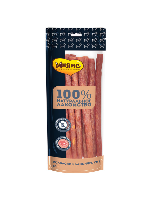 Повседневные Мнямс Лакомство Мнямс для собак Колбаски классические 80г