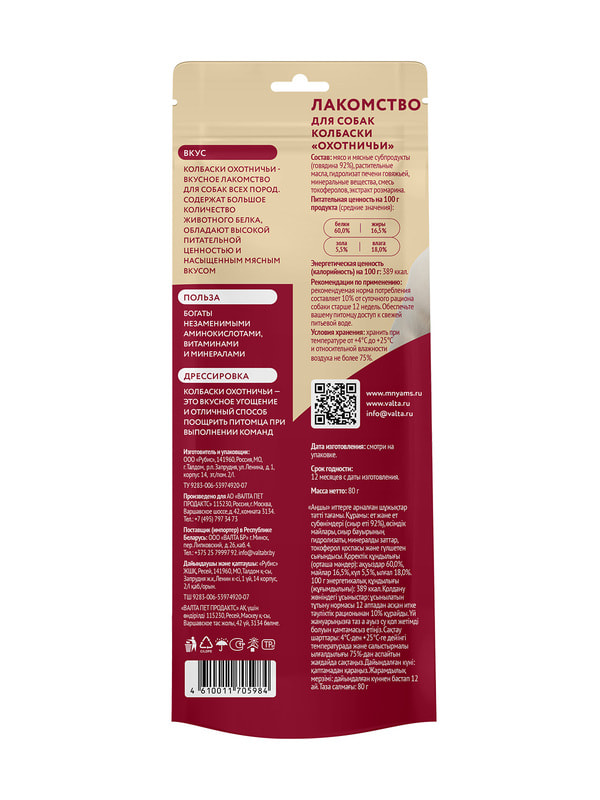 Охотничьи колбаски содержат высокое количество белка. Богаты незаменимыми аминокислотами, витаминами и минералами. Обладают высокой питательной ценностью и насыщенным мясным вкусом.