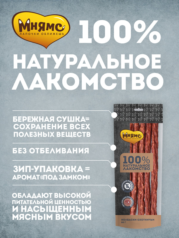 Повседневные Мнямс Лакомство Мнямс для собак Колбаски охотничьи 80г