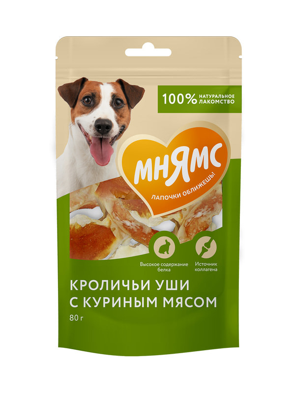 Кроличьи уши с куриным мясом "Мнямс" - это полезное диетическое лакомство, содержащее легкоусвояемый белок. Настоящий деликатес с вялеными ломтиками отборного филе не оставит равнодушным даже самого капризного любимца.