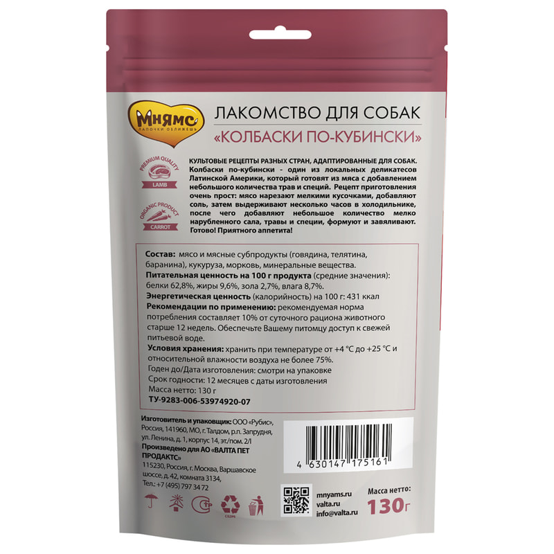 Повседневные Мнямс Лакомство Мнямс "Колбаски по-кубински" для собак 130 г