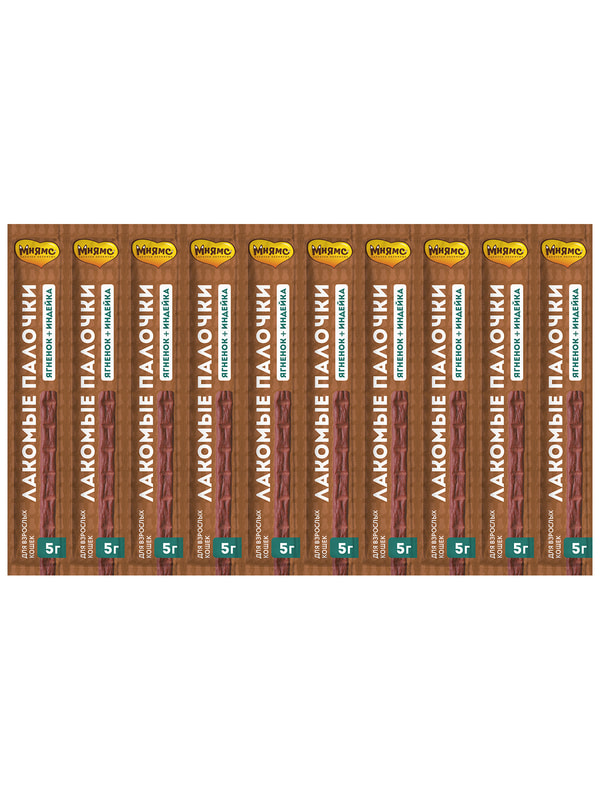 Повседневные Мнямс Лакомство Мнямс лакомые палочки 13,5 см для кошек из индейки и ягненка 10х5 г