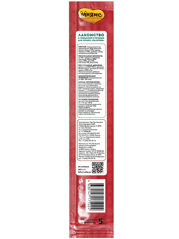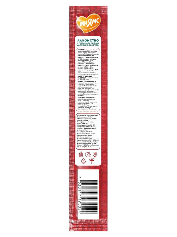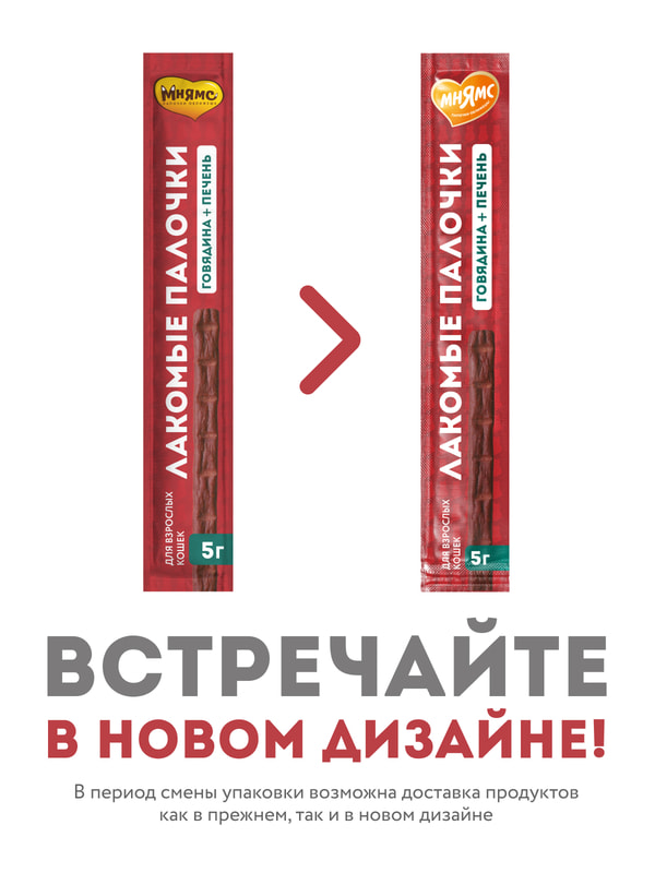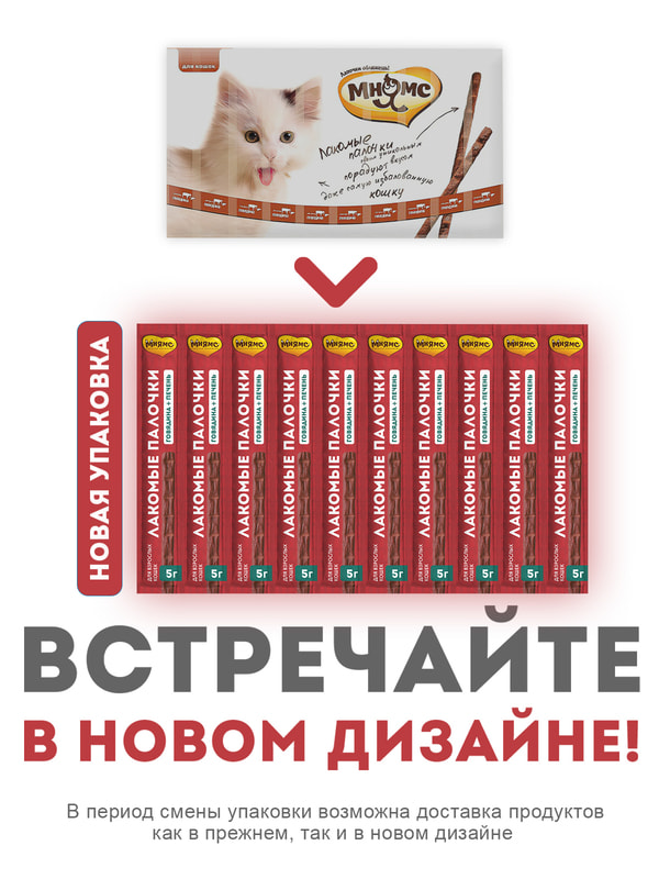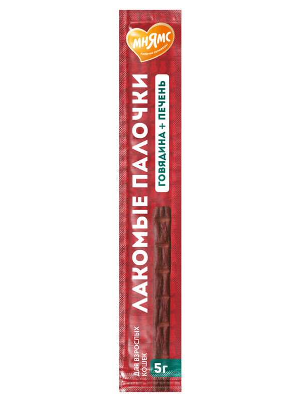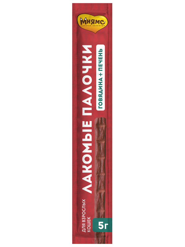 Лакомые палочкис говядиной и печенью - вкусный путь к сердцу вашей кошки. Лакомые палочки можно давать из рук, ломать и использовать для дрессировки, наполнять ими интерактивные игрушки или подмешивать в корм для улучшения вкусовой привлекательности. В составе палочек более 90% мяса. А также в составе нет злаков, глютена и ароматизаторов. Докажите свою любовь вместе с вкусными и полезными лакомыми палочками "Мнямс".