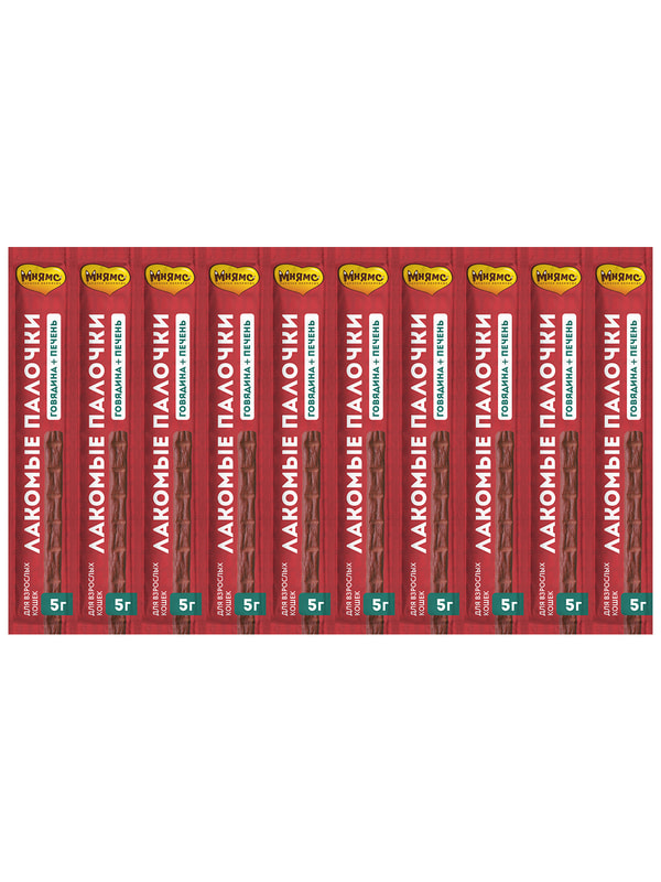 Повседневные Мнямс Лакомство Мнямс лакомые палочки 13,5 см для кошек с говядиной и печенью 10х5 г