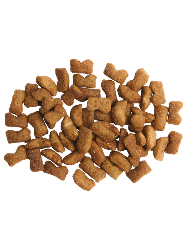 Злаки, мясо и животные производные 25% (дегидрированный цыпленок 13%, дегидрированная индейка 4%, мука из шквар (говядина, свинина), свиная печень, куриная печень), рыба и рыбные производные (дегидрированные: сельдь, макрель, сайда, треска, камбала), масла и жиры (куриный жир, жир индейки, масло лосося), минеральные вещества, экстракт растительных белков, яйцо куриное и яичные производные, дрожжи.