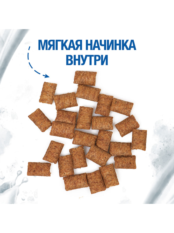Наружный хрустящий слой поддерживает гигиену полости рта, а мягкая начинка с молоком служит источником минералов для роста.