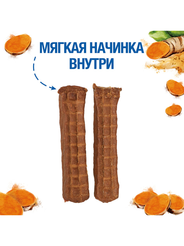 Состав лакомств обогащен витаминами для ежедневного поддержания жизненной силы, а также содержит такие функциональные ингредиенты, как босвеллия, для поддержания подвижности суставов.