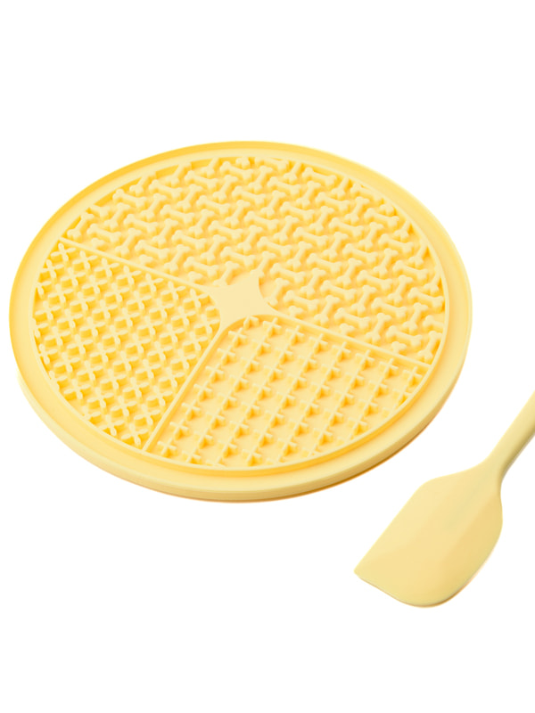 Просто размажьте любимый корм в виде паштета по поверхности коврика, используя лопатку в комплекте, и порадуйте своего питомца интерактивной игрой. Кинологии и зоопсихологи рекомендуют использовать лизательный коврик в качестве анти-стресс терапии при посещении ветеринарной клиники, грум-салона или для снижения уровня скуки при расставании с хозяином.