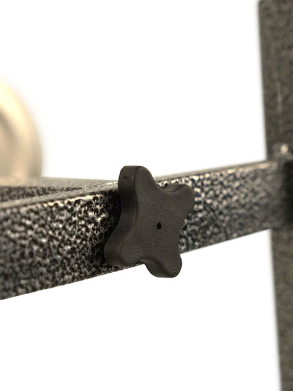 Металлическая стойка оснащена резиновыми ножками, что надежно фиксирует конструкцию на одном месте.