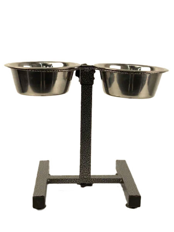 Удобная двойная миска из нержавеющей стали на штативе.