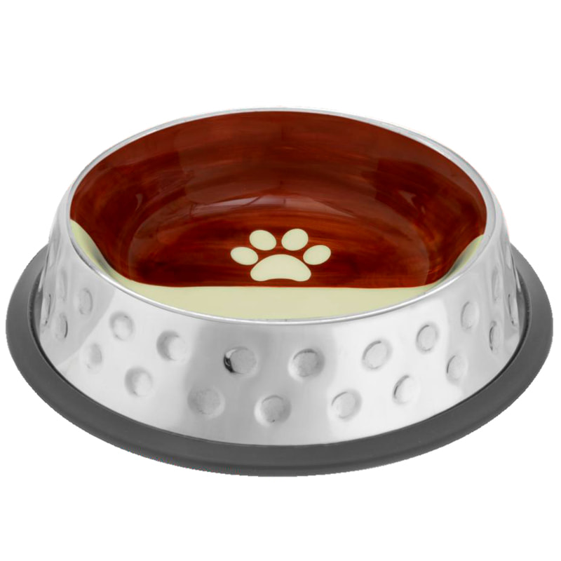 Яркая и стильная миска для кормления питомцев из нержавеющей стали.
