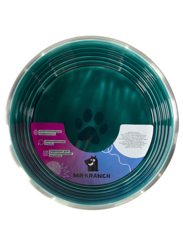 Миски, поилки, хранение корма Mr.Kranch Миска Mr.Kranch из нержавеющей стали с керамическим покрытием Cyclo 2,7 л, нескользящее основание, изумрудная
