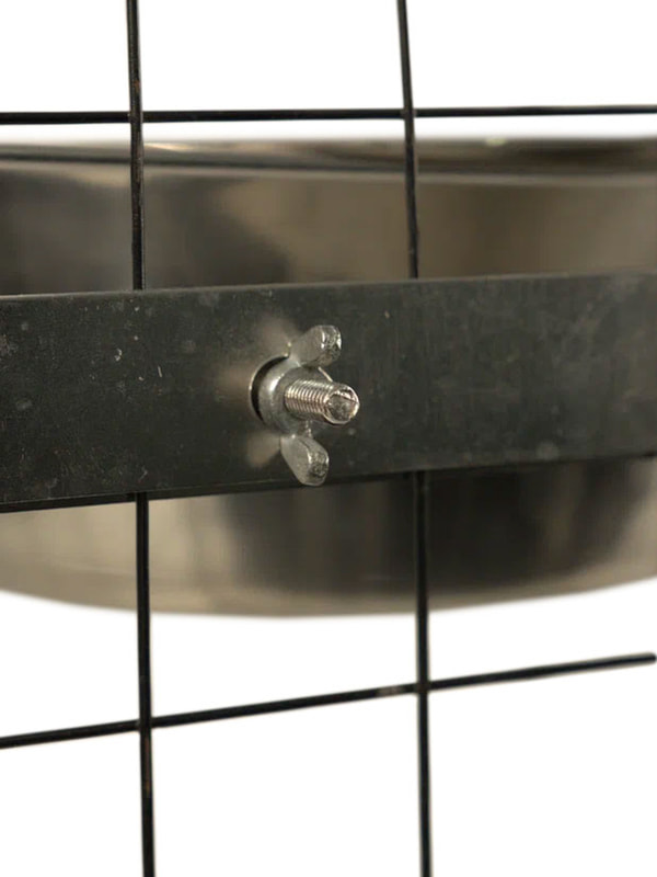 Миска из нержавеющей стали с креплением для вольера на болтах.