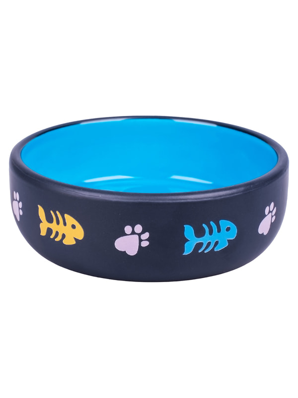 Миски, поилки, хранение корма Mr.Kranch Миска Mr.Kranch керамическая для кошек 350 мл черная с голубым