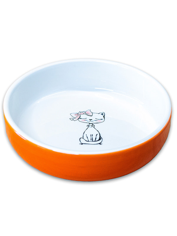 Миски, поилки, хранение корма Mr.Kranch Миска Mr.Kranch керамическая для кошек Кошка с бантиком 370 мл оранжевая