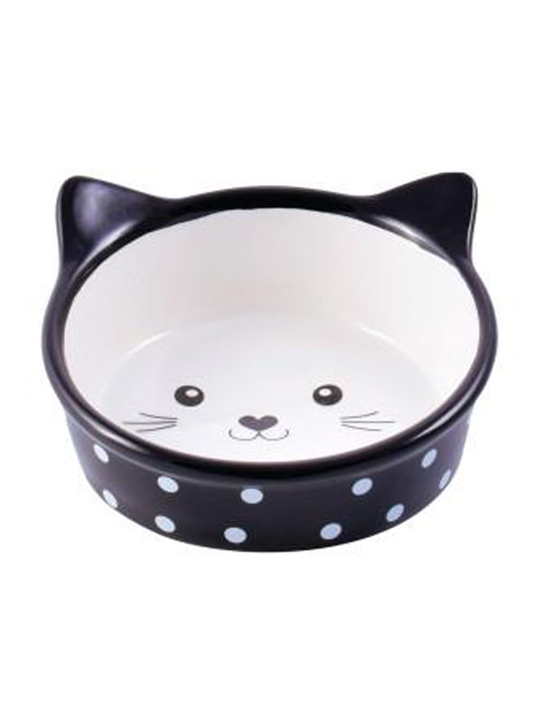 Миски, поилки, хранение корма Mr.Kranch Миска Mr.Kranch керамическая для кошек Мордочка кошки 250 мл черная в горошек
