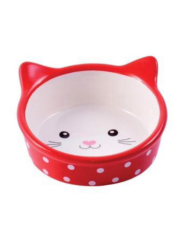 Миски, поилки, хранение корма Mr.Kranch Миска Mr.Kranch керамическая для кошек Мордочка кошки 250 мл красная в горошек