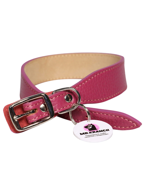 Ошейники, шлейки, намордники Mr.Kranch Ошейник Mr.Kranch для собак из натуральной кожи с QR-адресником, 22-26см, малиновый