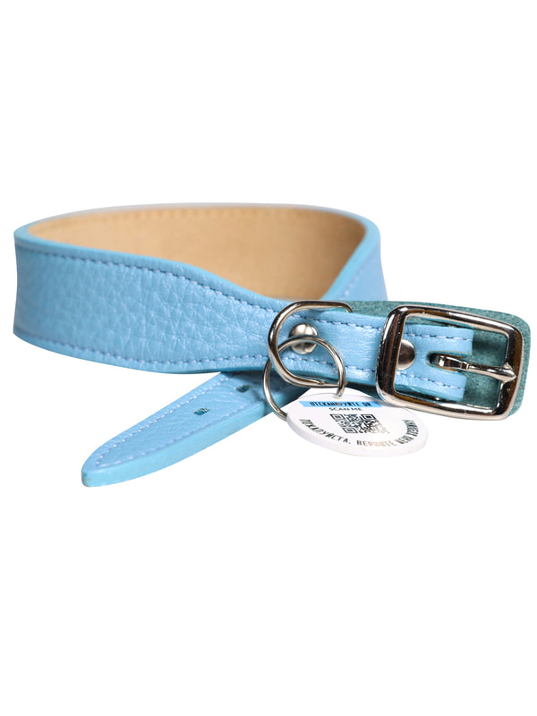 Ошейники, шлейки, намордники Mr.Kranch Ошейник Mr.Kranch для собак из натуральной кожи с QR-адресником, 33-40см, нежно-голубой