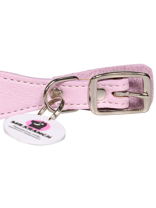 Ошейники, шлейки, намордники Mr.Kranch Ошейник Mr.Kranch для собак из натуральной кожи с QR-адресником, 33-40см, нежно-розовый