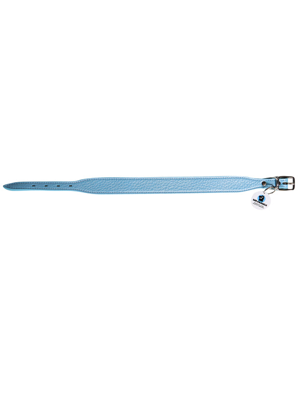 Ошейники, шлейки, намордники Mr.Kranch Ошейник Mr.Kranch для собак из натуральной кожи с QR-адресником, 38-45см, нежно-голубой