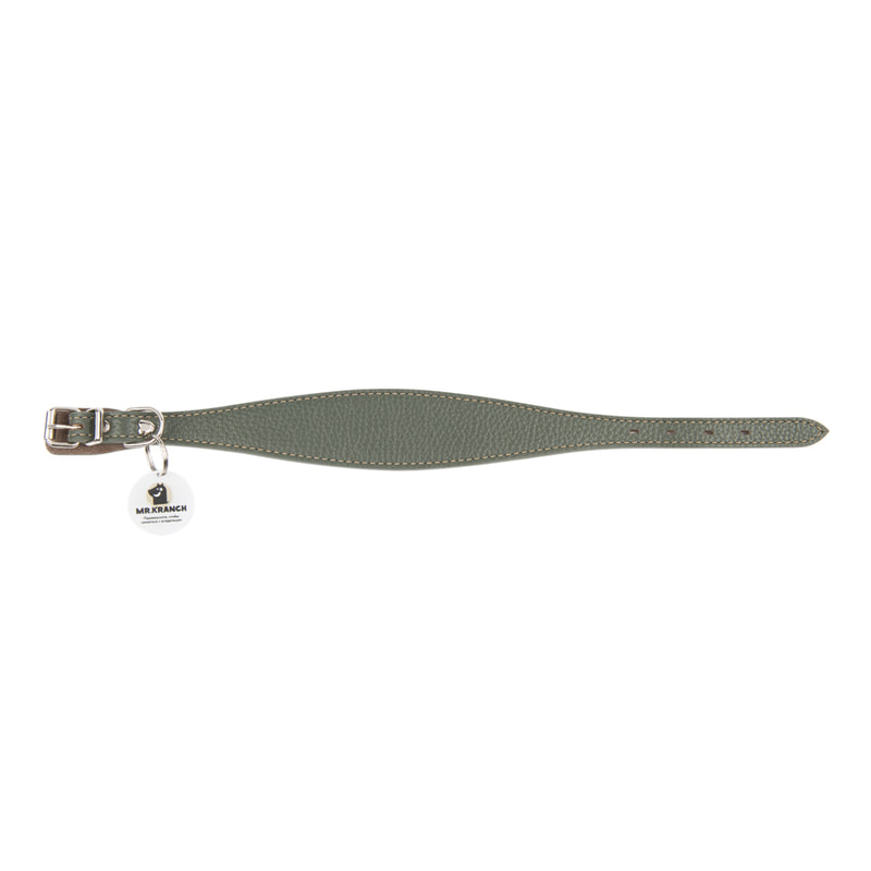 Ошейники, шлейки, намордники Mr.Kranch Ошейник-селедка Mr.Kranch для собак из натуральной кожи с QR-адресником, 21-25см, оливковый