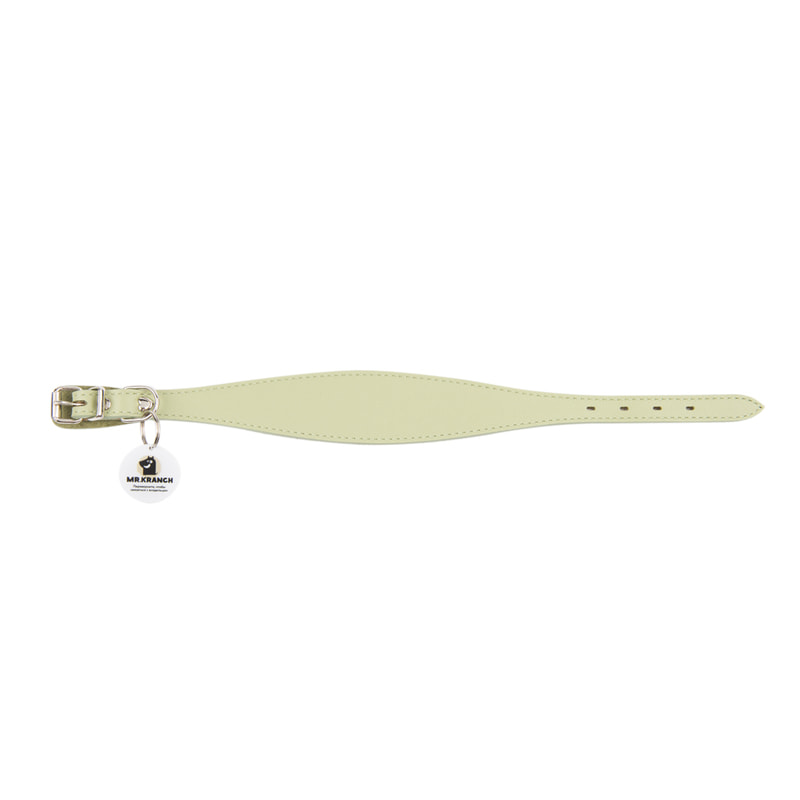 Ошейники, шлейки, намордники Mr.Kranch Ошейник-селедка Mr.Kranch для собак из натуральной кожи с QR-адресником, 24-30см, нежно-зеленый