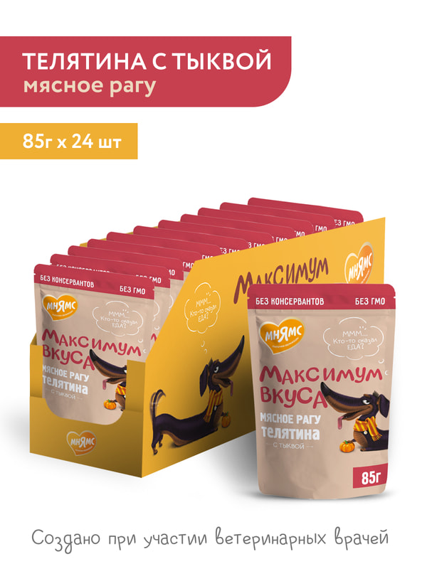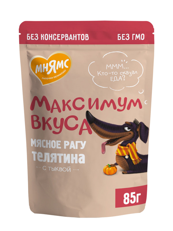 Повседневные корма Мнямс Пауч Мнямс мясное рагу с телятиной и тыквой для собак "Максимум вкуса" 85 г