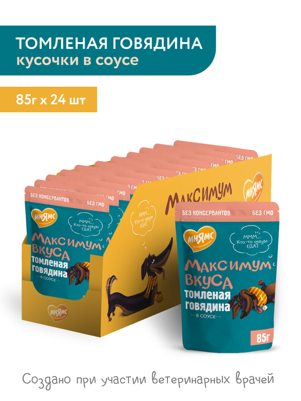 Повседневные корма Мнямс Пауч Мнямс томленая говядина в соусе для собак "Максимум вкуса" 85 г