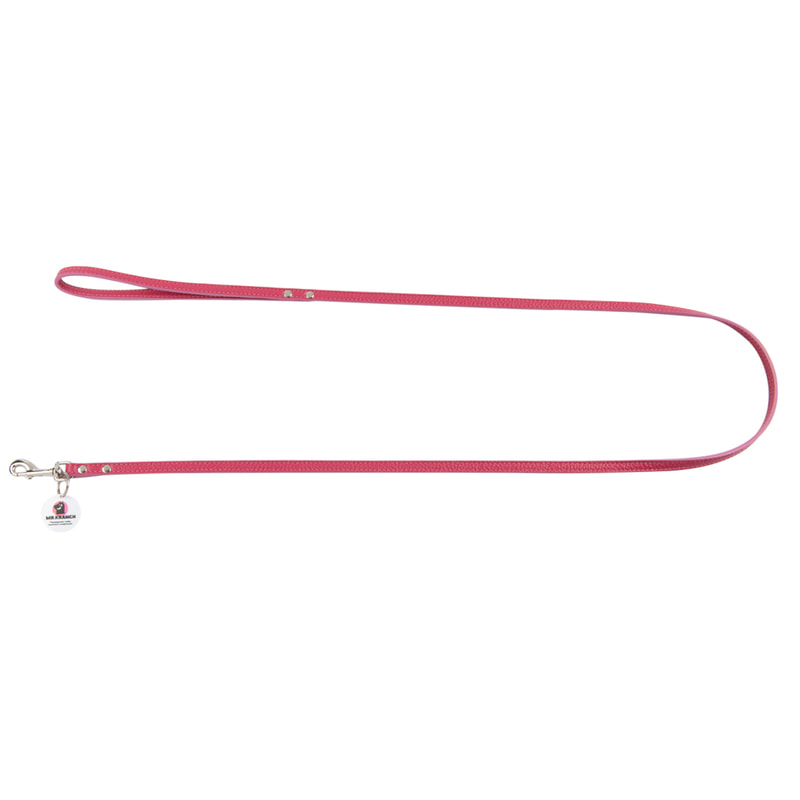 Рулетки, поводки, ринговые ленты Mr.Kranch Поводок Mr.Kranch для собак из натуральной кожи с QR-адресником, 130см, 10мм, розовый