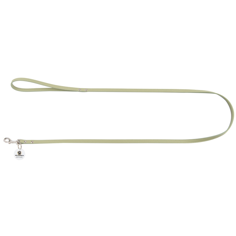 Рулетки, поводки, ринговые ленты Mr.Kranch Поводок Mr.Kranch для собак из натуральной кожи с QR-адресником, 130см, 12мм, нежно-зеленый