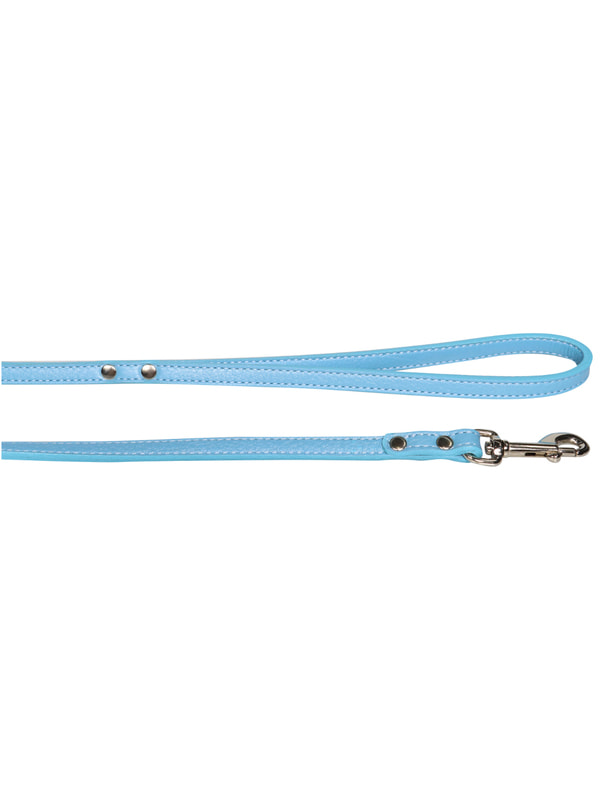 Рулетки, поводки, ринговые ленты Mr.Kranch Поводок Mr.Kranch для собак из натуральной кожи с QR-адресником, 130см, 8мм, нежно-голубой