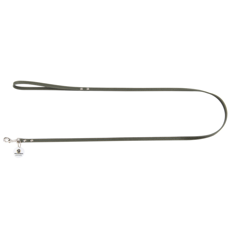 Рулетки, поводки, ринговые ленты Mr.Kranch Поводок Mr.Kranch для собак из натуральной кожи с QR-адресником, 130см, 8мм, оливковый