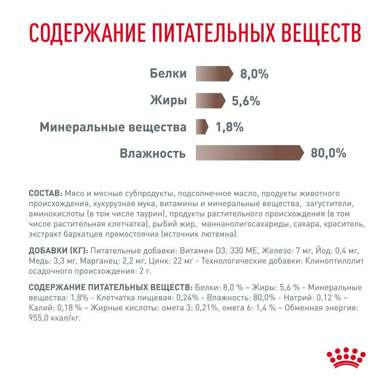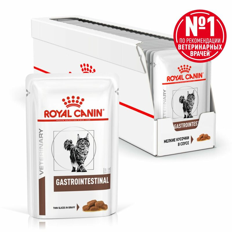 Консервированный корм ROYAL CANIN® GASTROINTESTINAL (ГАСТРОИНТЕСТИНАЛ), мелкие кусочки в соусе – это полнорационный диетический корм для кошек, рекомендуемый при расстройствах пищеварения, в период восстановления и при истощении. Легкоусвояемые ингредиенты. Дополнительное количество электролитов и высокое содержание основных питательных веществ. Высокая калорийность. Формула способствует поддержанию здорового пищеварения и оптимального качества стула. Высокое содержание энергии помогает уменьшить объем порции и снизить нагрузку на пищеварительную систему.