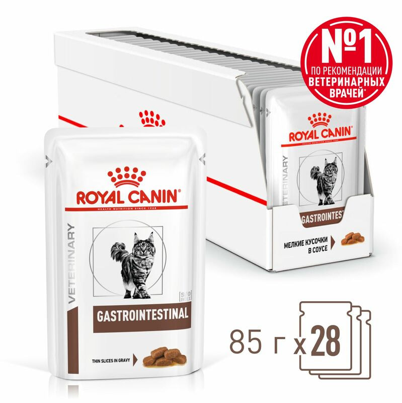 Влажные корма, консервы Royal Canin Royal Canin GASTROINTESTINAL Корм консервированный диетический для кошек, применяемый при расстройствах пищеварения, в период реабилитации и при истощении, 28 шт по 85 г