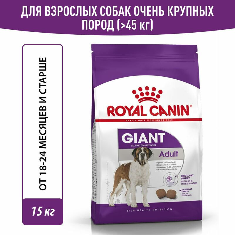 Сухие корма Royal Canin Royal Canin Giant Adult Корм сухой для взрослых собак очень крупных размеров от 18 месяцев, 15 кг