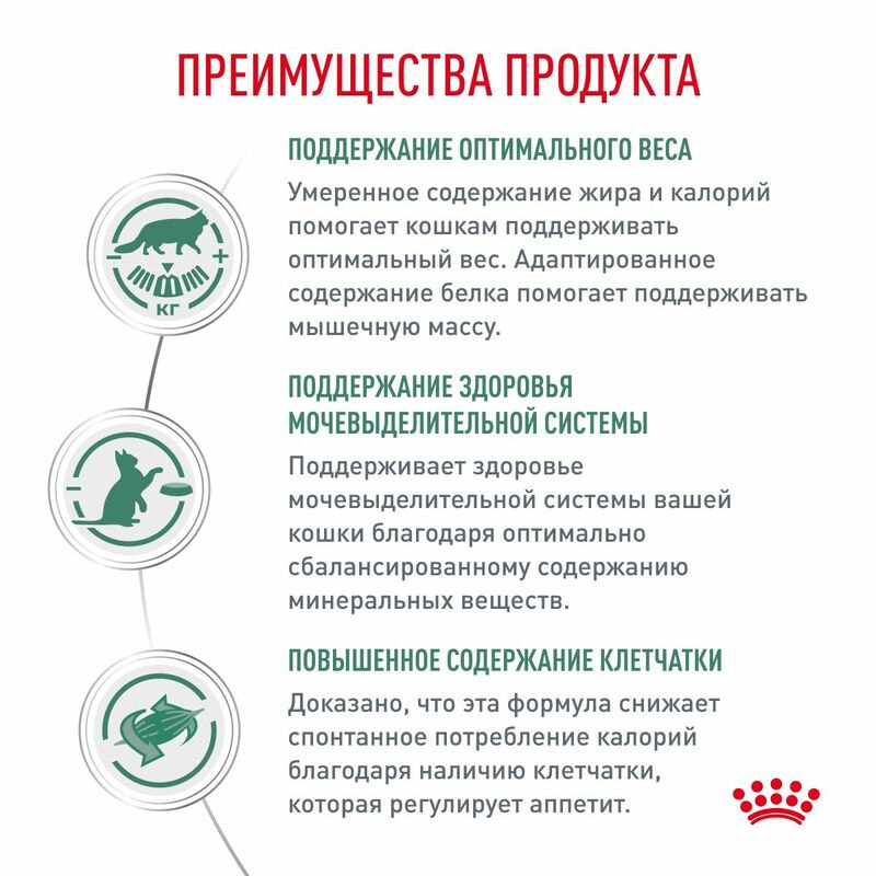 Сухой корм ROYAL CANIN®SATIETY WEIGHT MANAGEMENT (СЭТАЙЕТИ ВЕЙТ МЕНЕДЖМЕНТ) - полнорационный диетический корм для взрослых кошек, рекомендуемый для снижения веса. Рекомендуется для снижение веса и поддержания достигнутого результата. Высокое содержание клетчатки и высококачественного белка обеспечивает быстрое насыщение и длительное чувство сытости кошки.