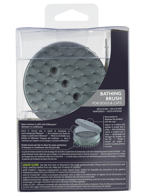 Щетка для купания FURminator (Фурминатор) помогает поддерживать красоту шерсти. Используйте ежемесячно во время купания животного на влажной шерсти.