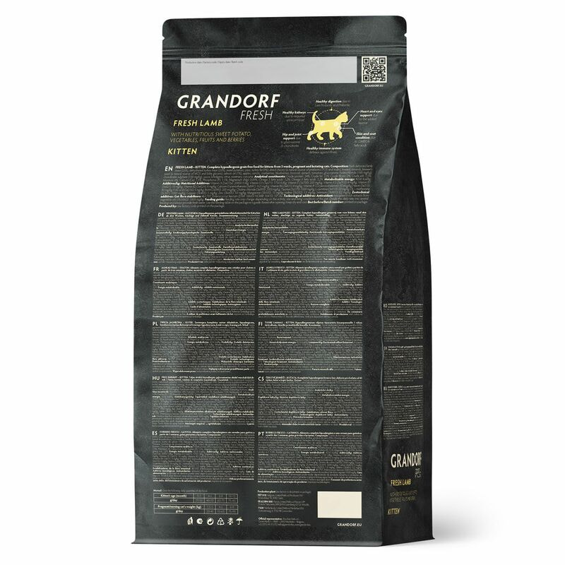 Для маленьких Сухой беззерновой корм GRANDORF Fresh KITTEN для котят, ягненок с бататом 2 кг