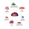 Ингредиенты: Дегидрированное мясо индейки 18%, дегидрированное мясо курицы 13%, рис, ячмень, жир животный (куриный), чечевица зеленая, рисовый протеин, гидролизованное мясо утки 4%, гидролизованные мясные белки, витаминно-минеральный комплекс (А, D, E, К3, В1, В2, В4, В6, В12, ниацин, пантотеновая кислота, биотин, фолиевая кислота), сухие пивные дрожжи, сушеная мякоть свеклы, семена льна, рыбий жир (лососевый), юкка Шидигера, шиповник, розмарин, цикорий, пробиотики (Bacillus subtilis, Bacillus licheniformis).