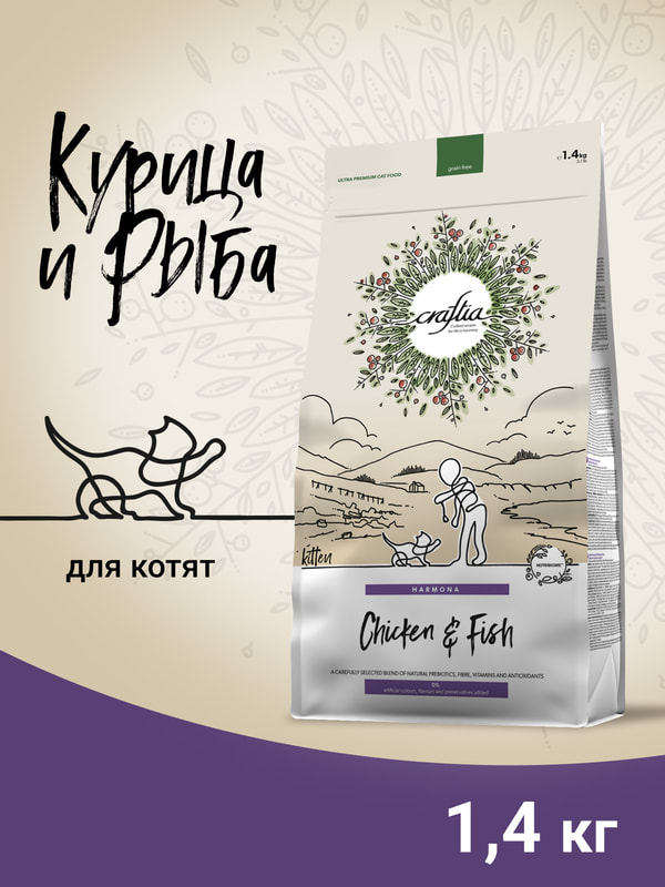 Повседневные корма Craftia Сухой корм CRAFTIA HARMONA для котят из курицы и рыбы 1,4 кг