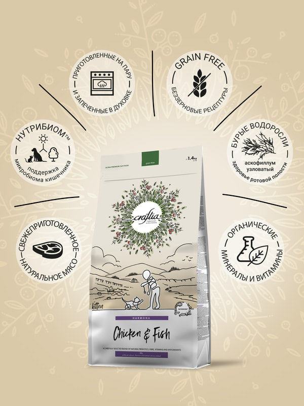 CRAFTIA HARMONA — корм для кошек ультрапремиум класса, созданный с любовью к природе.