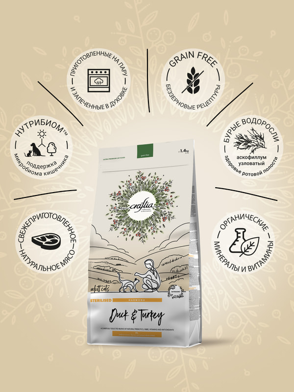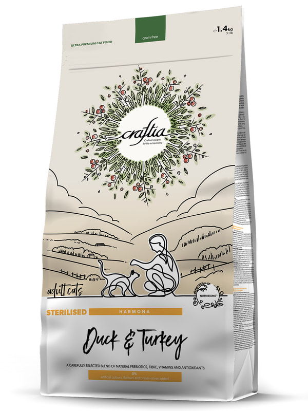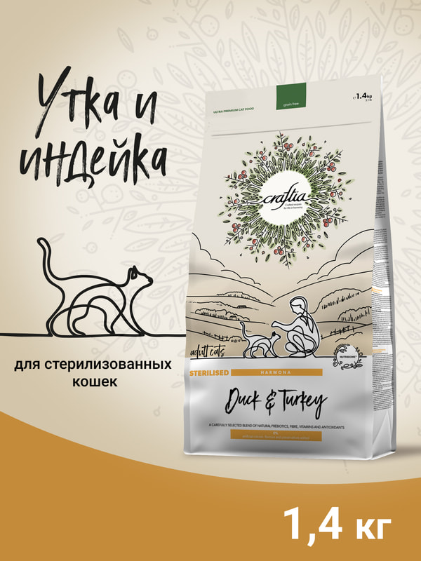 Повседневные корма Craftia Сухой корм CRAFTIA HARMONA для стерилизованных кошек из утки и индейки 1,4 кг