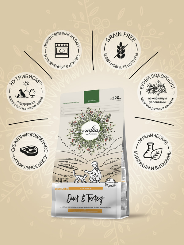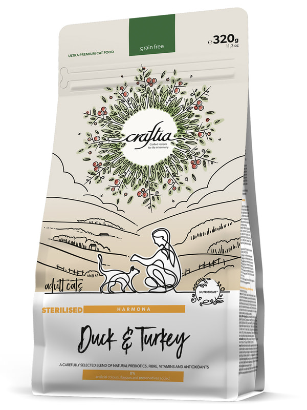 Повседневные корма Craftia Сухой корм CRAFTIA HARMONA для стерилизованных кошек из утки и индейки 320 г