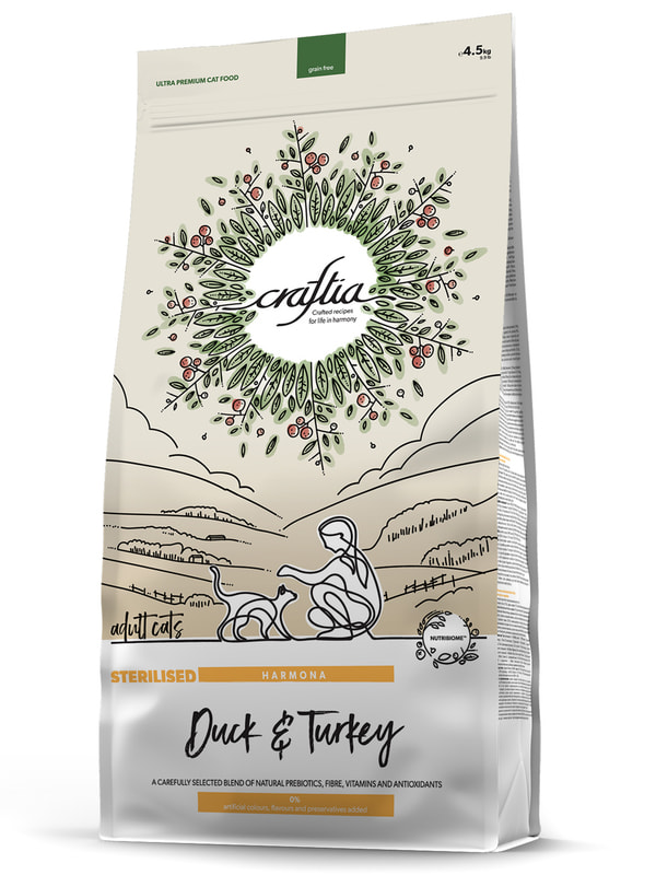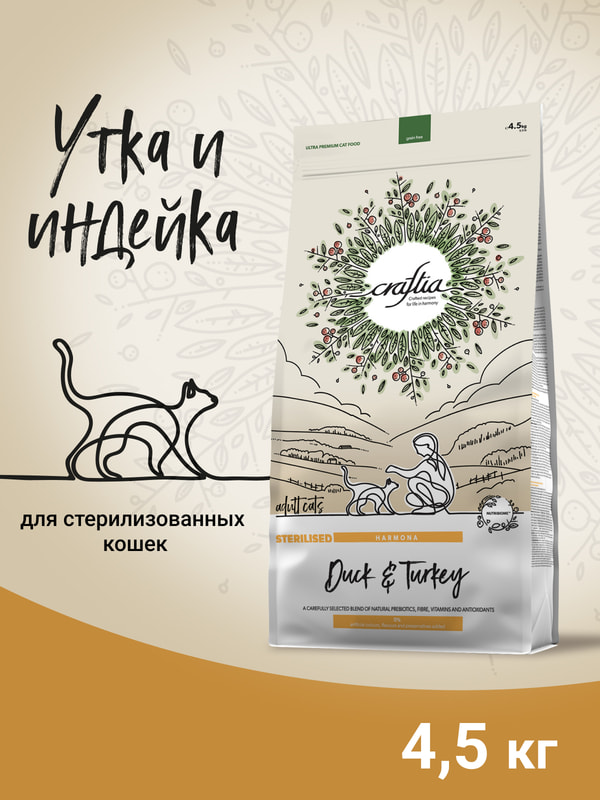 Повседневные корма Craftia Сухой корм CRAFTIA HARMONA для стерилизованных кошек из утки и индейки 4,5 кг